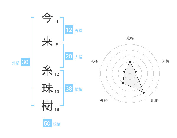 今来 糸珠樹さんの総格は50画の2点!
