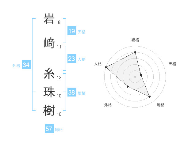 岩﨑 糸珠樹さんの総格は57画の4点!