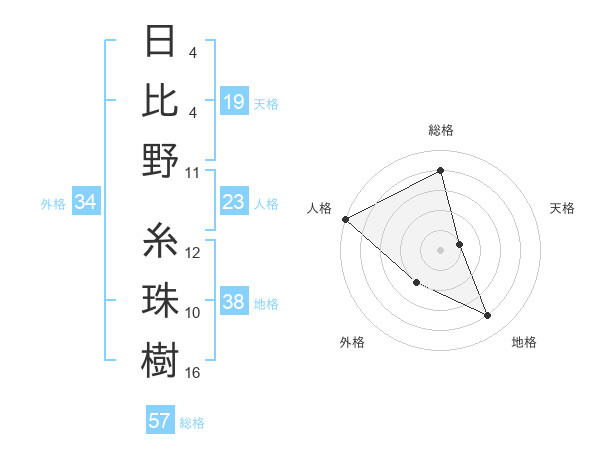 日比野 糸珠樹さんを姓名の画数から五運を鑑定