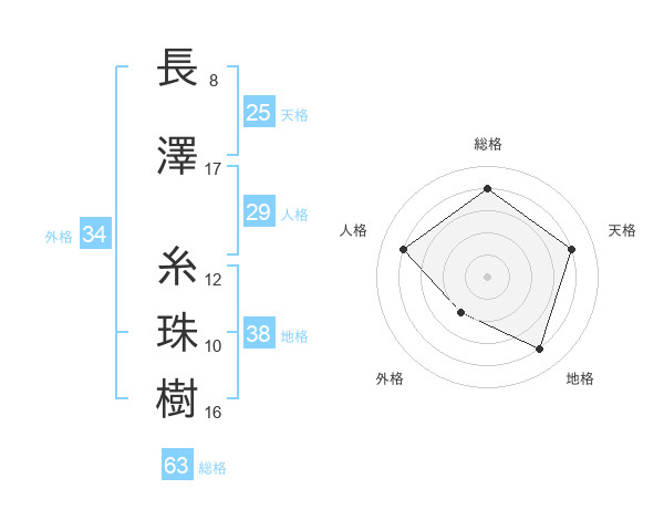 長澤 糸珠樹さんを姓名の画数から五運を鑑定