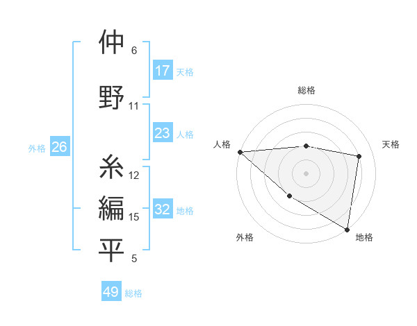 仲野 糸編平さんを姓名の画数から五運を鑑定