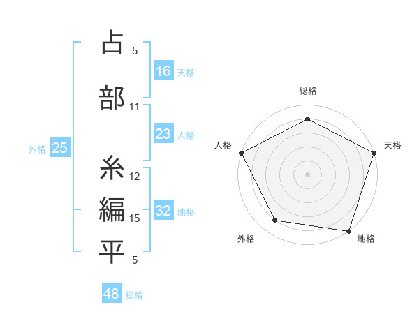 占部 糸編平さんを姓名の画数から五運を鑑定