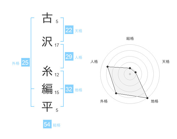 古沢 糸編平さんを姓名の画数から五運を鑑定