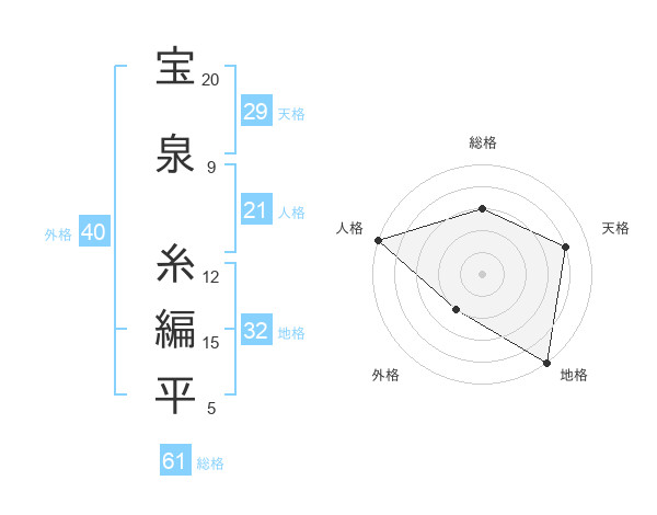宝泉 糸編平さんを姓名の画数から五運を鑑定