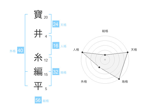 寶井 糸編平さんの総格は56画の1点