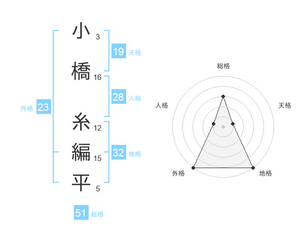 小橋 糸編平さんを姓名の画数から五運を鑑定