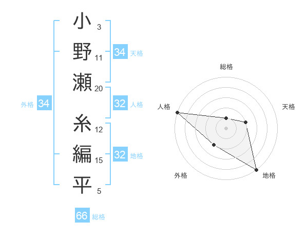 小野瀬 糸編平さんを姓名の画数から五運を鑑定