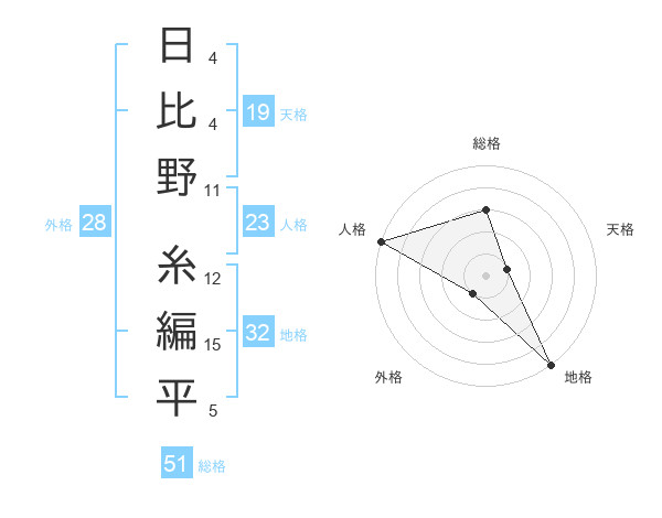 日比野 糸編平さんを姓名の画数から五運を鑑定