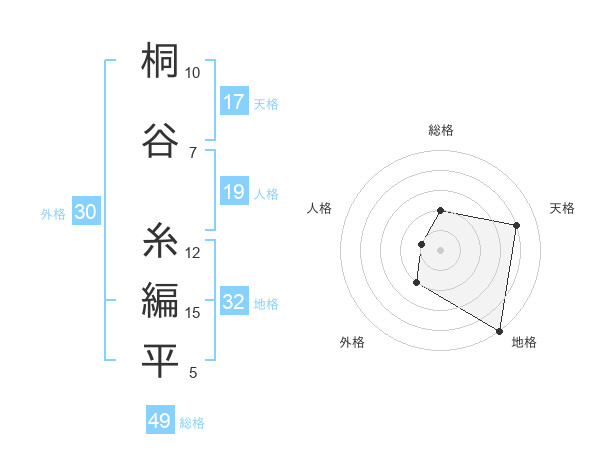 桐谷 糸編平さんを姓名の画数から五運を鑑定