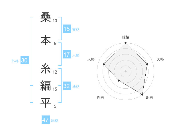 桑本 糸編平さんの総格は47画の5点!