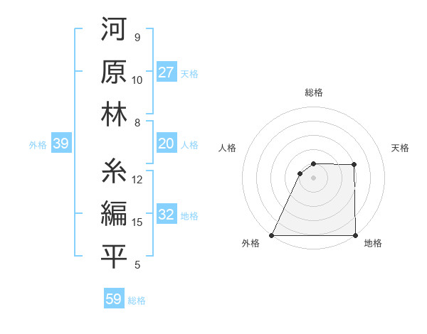 河原林 糸編平さんを姓名の画数から五運を鑑定
