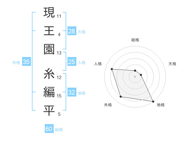 現王園 糸編平さんの総格は60画の1点!