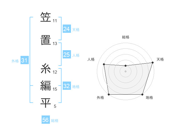 笠置 糸編平さんを姓名の画数から五運を鑑定