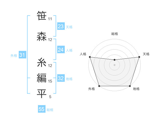 笹森 糸編平さんを姓名の画数から五運を鑑定