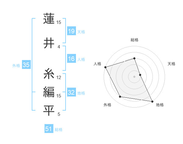 蓮井 糸編平さんを姓名の画数から五運を鑑定