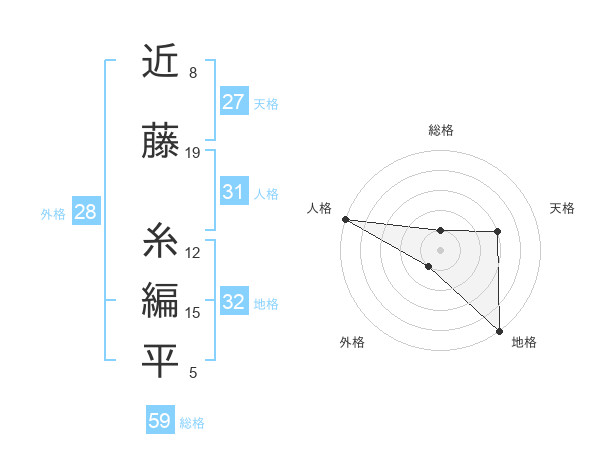 近藤 糸編平さんの総格は59画の1点