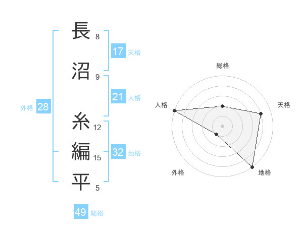 長沼 糸編平さんの地格は32画の5点!