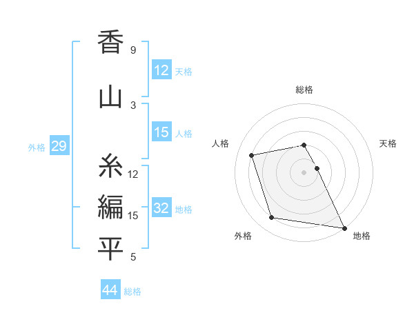 香山 糸編平さんを姓名の画数から五運を鑑定