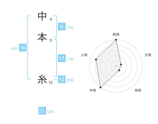 中本 糸さんの総格は21画の5点!
