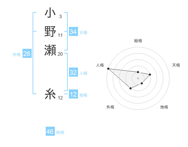 小野瀬 糸さんを姓名の画数から五運を鑑定