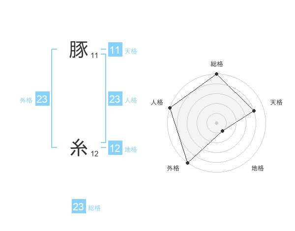 豚 糸さんの外格は23画の5点!