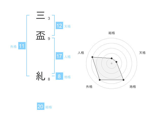 三盃 糺さんの総格は20画の1点!