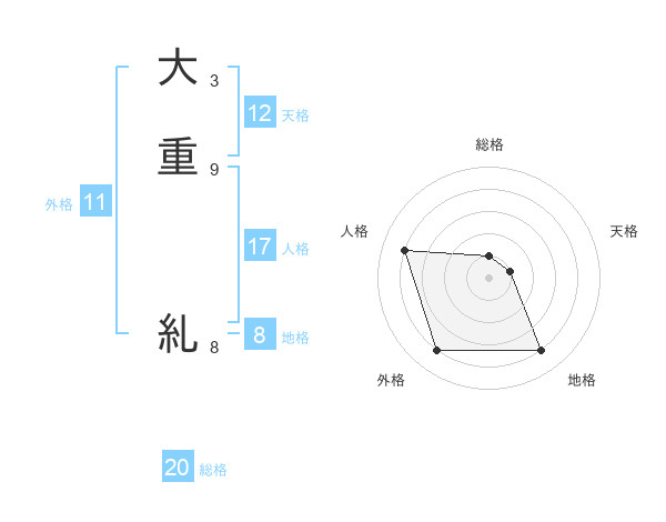 大重 糺さんの総格は20画の1点!