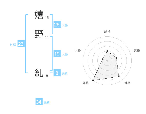 嬉野 糺さんを姓名の画数から五運を鑑定