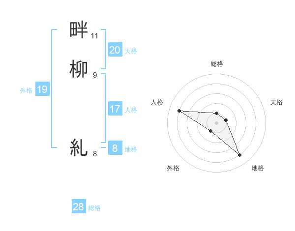 畔柳 糺さんを姓名の画数から五運を鑑定