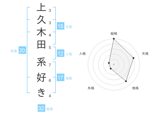 上久木田 系好きさんを姓名の画数から五運を鑑定