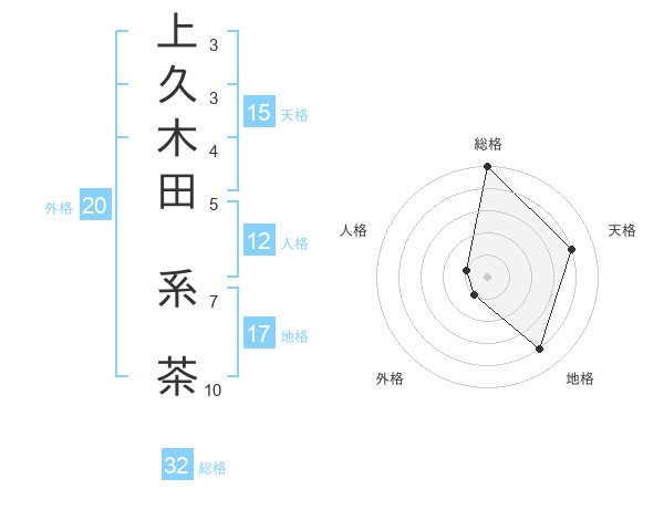 上久木田 系茶さんの総格は32画の5点!