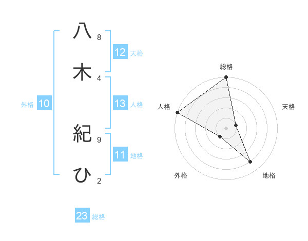 八木 紀ひさんを姓名の画数から五運を鑑定
