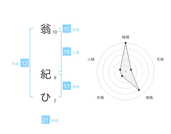 翁 紀ひさんを姓名の画数から五運を鑑定