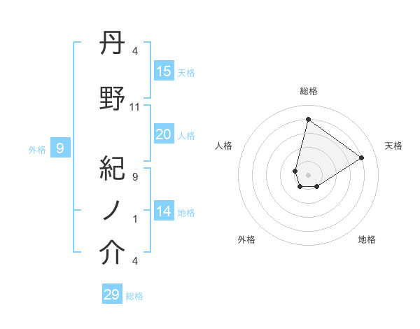 丹野 紀ノ介さんの総格は29画の4点!