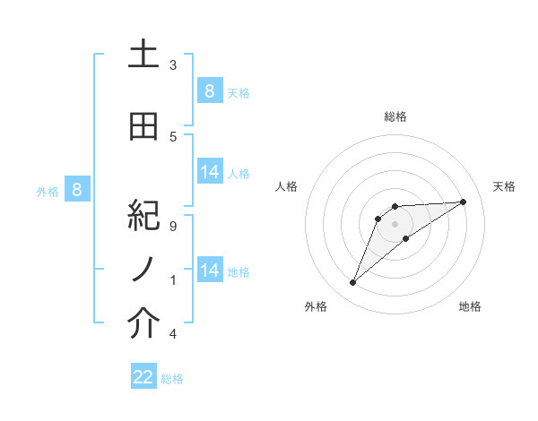 土田 紀ノ介さんを姓名の画数から五運を鑑定