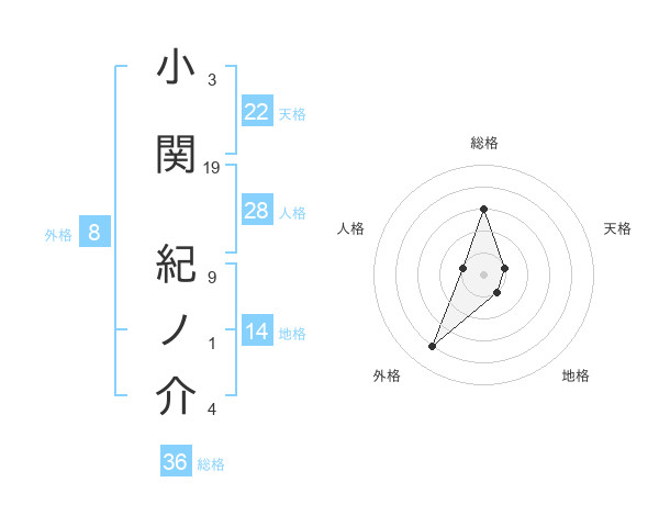 小関 紀ノ介さんを姓名の画数から五運を鑑定