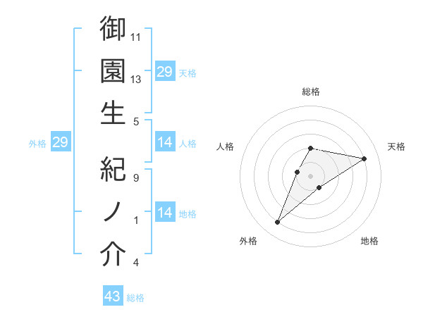 御園生 紀ノ介さんを姓名の画数から五運を鑑定