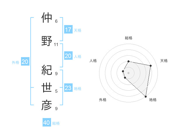 仲野 紀世彦さんの天格は17画の4点!