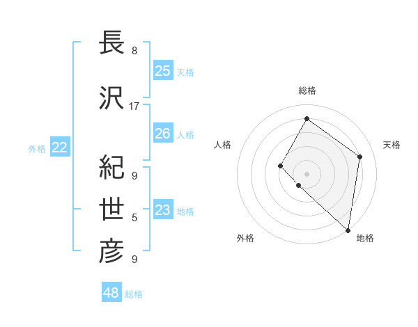 長沢 紀世彦さんを姓名の画数から五運を鑑定