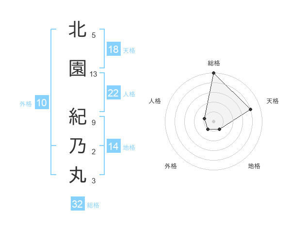 北園 紀乃丸さんの総格は32画の5点!
