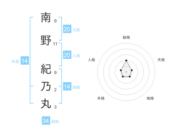 南野 紀乃丸さんを姓名の画数から五運を鑑定