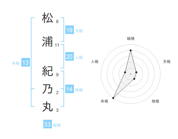 松浦 紀乃丸さんを姓名の画数から五運を鑑定