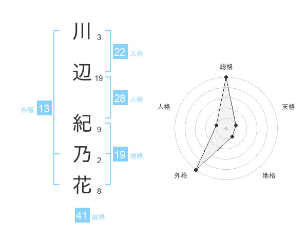 川辺 紀乃花さんを姓名の画数から五運を鑑定