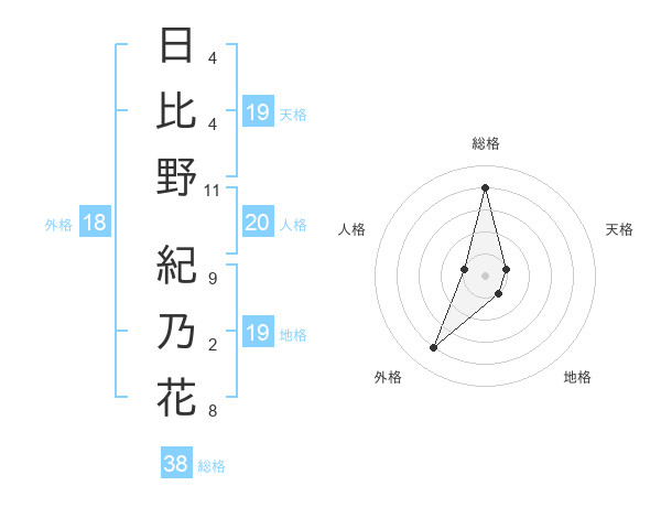 日比野 紀乃花さんを姓名の画数から五運を鑑定