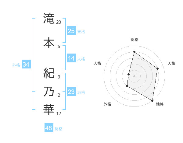 滝本 紀乃華さんを姓名の画数から五運を鑑定