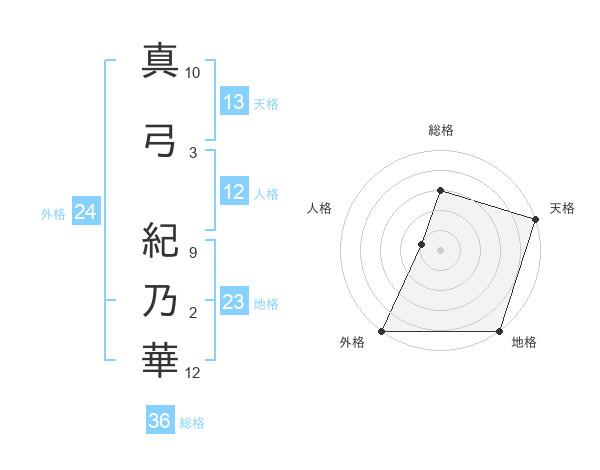 真弓 紀乃華さんを姓名の画数から五運を鑑定
