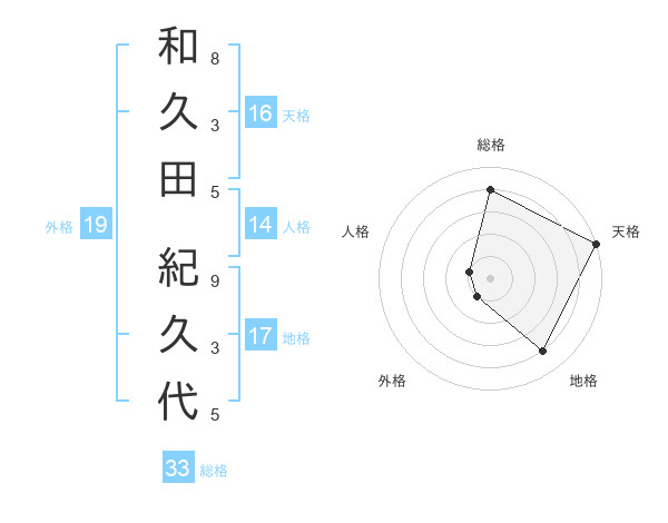 和久田 紀久代さんを姓名の画数から五運を鑑定