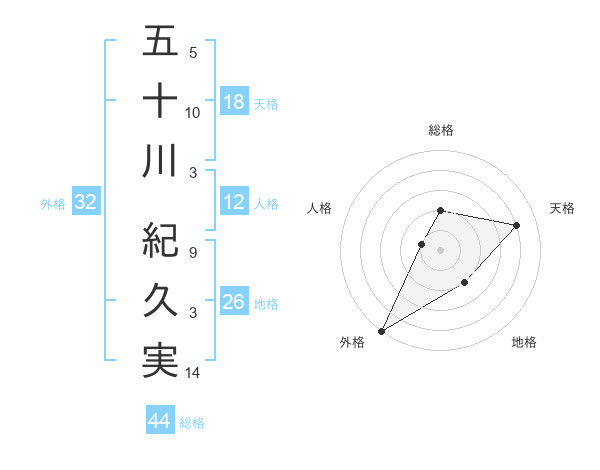 五十川 紀久実さんの外格は32画の5点!