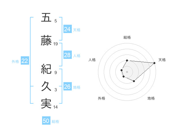 五藤 紀久実さんの天格は24画の5点!
