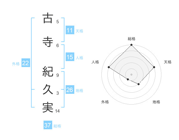 古寺 紀久実さんを姓名の画数から五運を鑑定